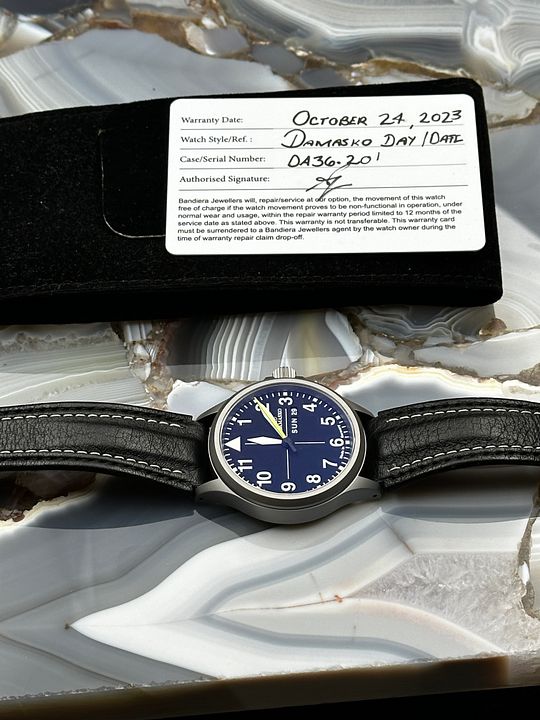 This Damasko features an Ice Hardened SS Case OEM leather strap and comes with a service with warranty valid until October 2024.