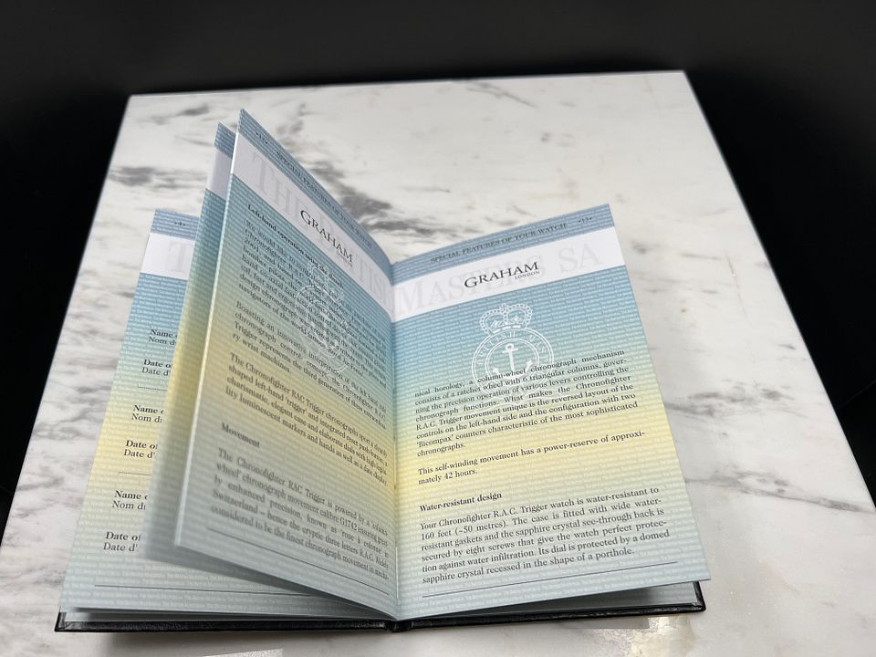 Graham Chronofighter R.A.C Trigger in excellent condition with boxes booklet and warranty card.