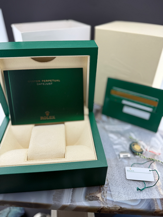 Comes with boxes ,warranty card ,white hang tag, green hang tag, removed stickers, bezel protector, outer white sleeve, polish cloth and all links.